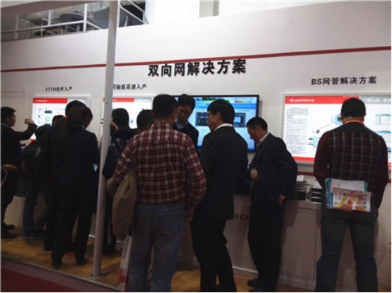 四川九洲重点展示了应急广播系统、融合智能终端系统、双向网解决方案、AVS+信源系统、酒店视频管理系统、云业务解决方案等最新应用技术和系统整体解决方案。