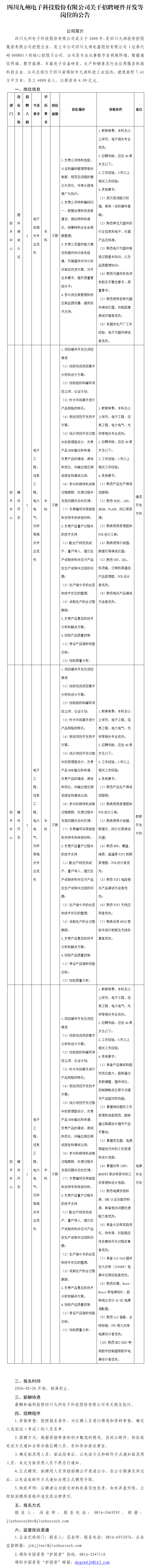 四川九州电子科技股份有限公司关于招聘硬件开发等岗位的公告